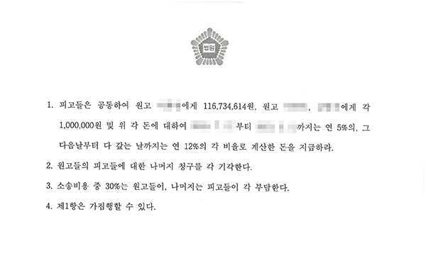 고려법률사무소(담당 변호사 : 강영상)는 원고인 놀이기구(디스코팡팡)을 이용하다 상해를 입은 경상북도 소재 A씨를 대리하여 해당 놀이기구를 운영하는 사업주를 피고로 손해배상 청구소송을 제기하였습니다. 고등학생이였던 A씨는 친구들과 함께 놀이기구(원형의자에 둘러앉아 이용하는 '디스코팡팡')을 이용하던 중 안전바를 놓치게 되어 상해를 입었으나 사업주는 상황을 인지하고도 조치하지 않았다는 점을 대변하여 피고는 원고에게 발생된 일실수입과 치료비를 배상하라는 판결을 받아냈습니다.