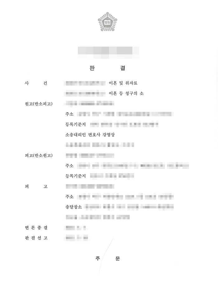 고려법률사무소(담당 변호사 : 강영상)는 원고(반소피고) A씨를 대리하여 원고를 기망하고 불륜을 일으킨 B씨과 그의 상대방에게 상간소송과 이혼소송을 함께 진행지켜 수천만원의 위자료와 그에 따른 재산분할을 이끌어 냈습니다.